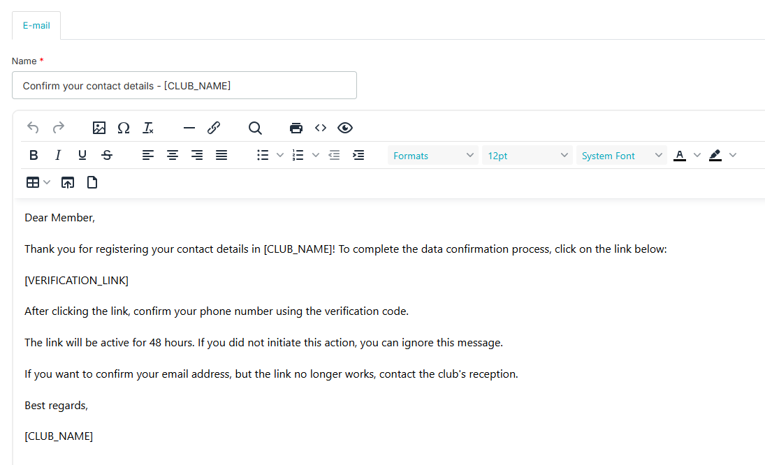 The system already includes default notification templates that members receive during the two-step verification process. These can be found in the Club Settings (or Network Settings for network clubs) -> Automation tab. These include: