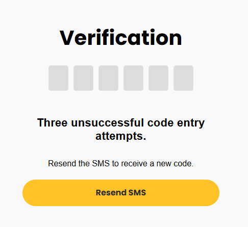 The member has three attempts to enter the correct code. If all attempts fail, the code will be deactivated, and a new SMS will need to be sent: