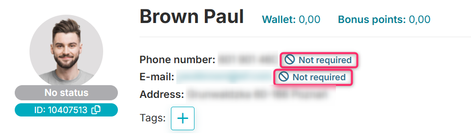 d) Not required – this status is only available for associated profiles, such as children. It is displayed when the associated member does not have permissions to receive individual notifications or agreements but does have contact information entered.